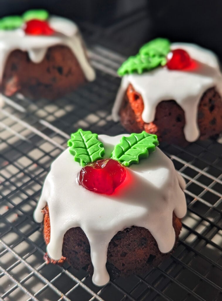 These gluten free Christmas pudding cupcakes are bursting with festive spices and juicy dried fruit, topped with thick glace icing. Absolute delicious!
