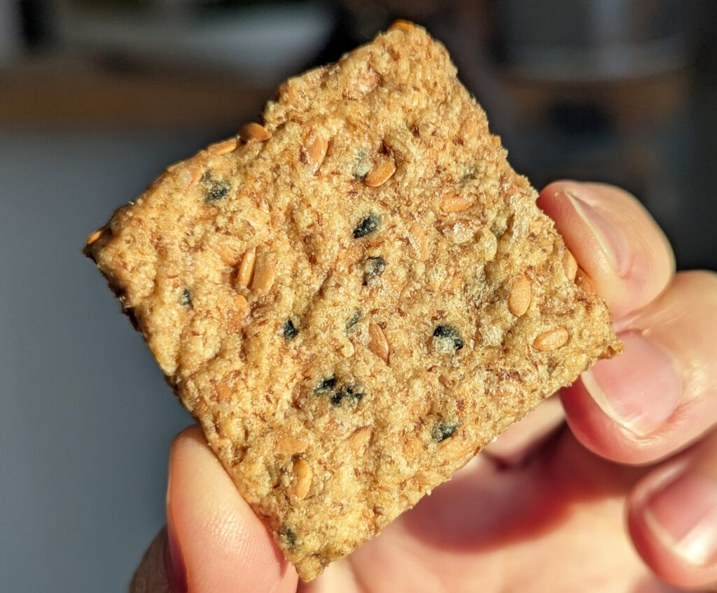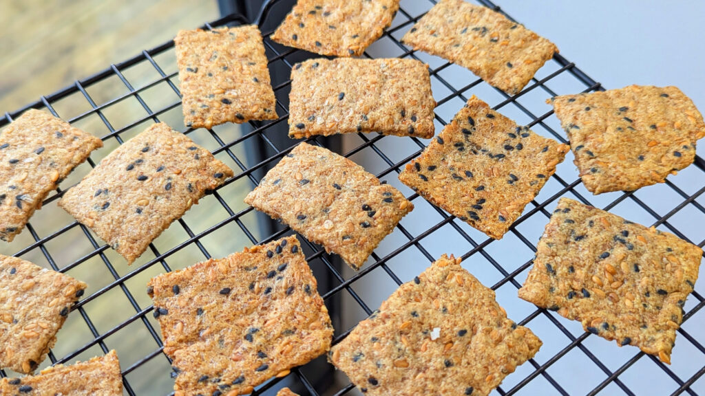 Crispy, crunchy gluten free sourdough discard crackers, flavoured with linseed, sesame and parmesan – these little beauties are easy to make and incredibly munchable. Plus full of fibre and goodness and a great way to avoid sourdough discard going in the bin.